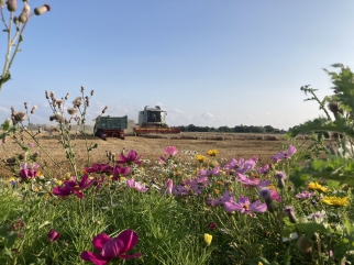 26.6.2020: unsere ausgesamte Blühstreifen-Saat vom letzten Jahr hat durch den milden Winter überlebt und zeigt jetzt eine herrliche Blütenpracht am Rand unseres Rapsfeldes. Da freuen sich die Insekten und die vorbeikommenden Spaziergänger und Fahrradfahrer. Und auch der im Frühjahr neu ausgesäte Blühstreifen ein Stück weiter beginnt jetzt zu blühen. Da freuen wir uns jedes Mal, wenn wir vorbei kommen!